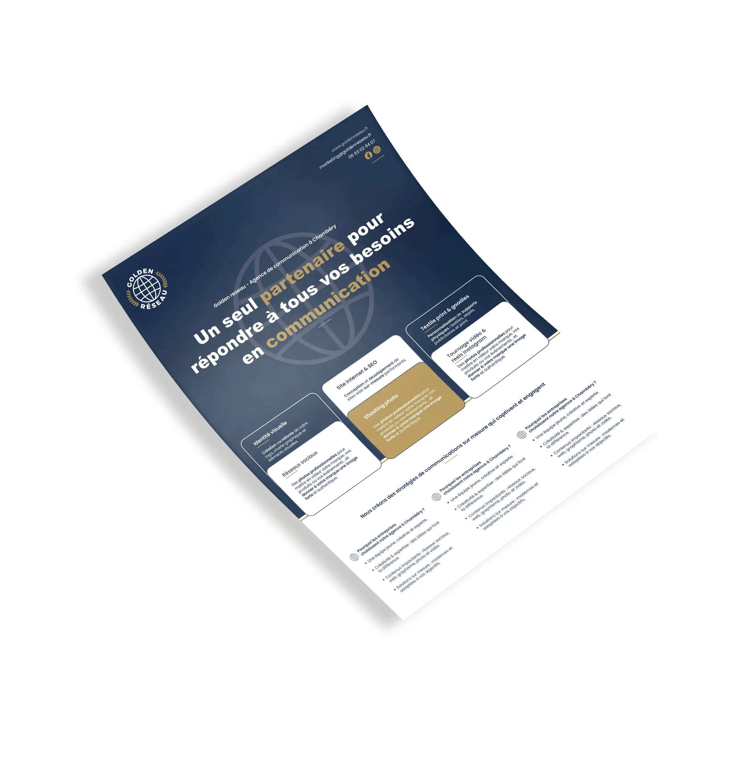 Chez Golden Réseau, agence de communication à Chambéry, nous vous accompagnons dans la création et l’impression d’affiches professionnelles, pensées pour marquer les esprits et valoriser votre image.