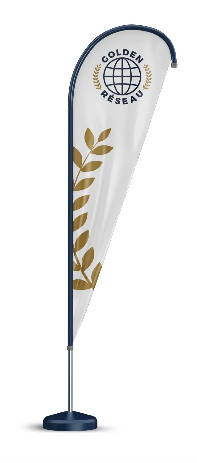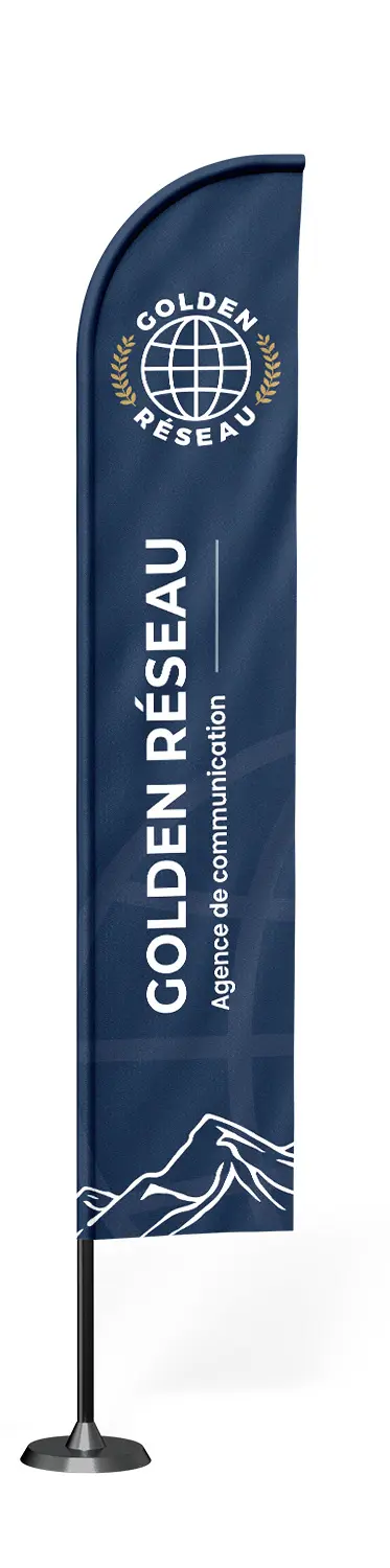 Chez Golden Réseau, nous vous accompagnons dans la création graphique de votre drapeau publicitaire, pour maximiser son impact.